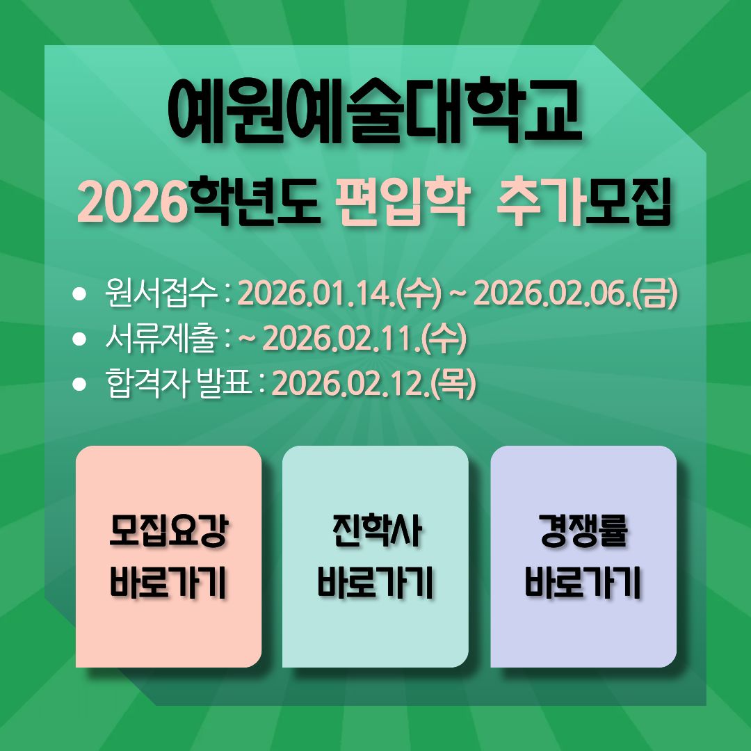 문화예술 인재 양성의 요람인 예원예술대학교에서 마음껏 펼쳐보십시오